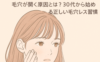 毛穴が開く原因・詰まる理由をわかりやすく解説。インナードライ・皮脂・角栓・たるみ毛穴に合わせた正しいケア方法と、30代からの毛穴レス習慣について丁寧にまとめました。